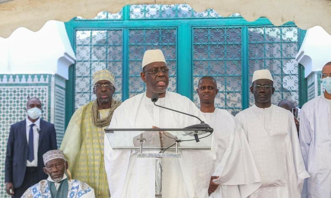 رئيس الجمهورية ماكي سال يؤدي صلاة العيد في الجامع الكبير بدكار ، بعد إغلاق طويل بسبب جائحة كورونا .