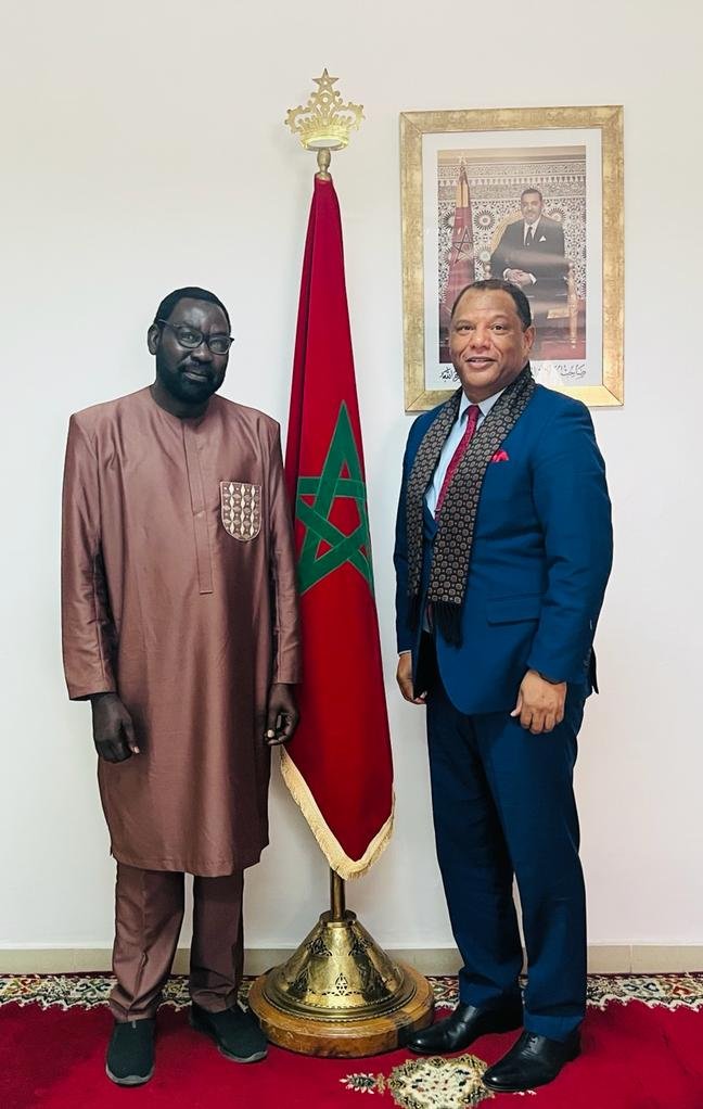 إستقبل الأستاذ حسن ناصري سفير جلالة الملك محمد السادس المعتمد لدى جمهورية السنغال هذا الصباح في مكتبه الأستاذ فاضل غي المدير العام لمؤسسة “رفي “، رئيس نادي السنغال الأدبي ، وجرى أثناء هذا اللقاء الحديث حول العلاقات التاريخية الدبلوماسية والروحية المتميزة بين المغرب والسنغال ، وركز الإعلامي السنغالي فاضل غي في حديثه مع سعادة السفير حسن ناصري على عمق ومتانة العلاقات بين البلدين الشقيقين ، وتطرق الجانبان إلى أهمية تفعيل التعاون الإعلامي بين المملكة المغربية والمؤسسات الإعلامية في السنغال وفي طليعتها الصحافة السنغالية المكتوبة بالعربية