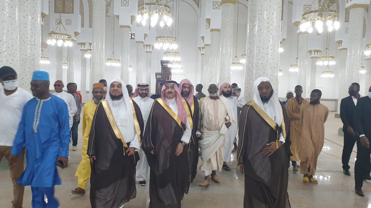 واطلع ” الحمدان ” خلال الزيارة التي رافقه فيها سعادة سفير خادم الحرمين الشريفين لدى جمهورية غينيا كوناكري الدكتور حسين بن ناصر الدخيل الله على الجامع ومرافقه ، مستمعاً لشرح مفصل عن تاريخه وأبرز المراحل التي مر بها منذ تأسيسه .