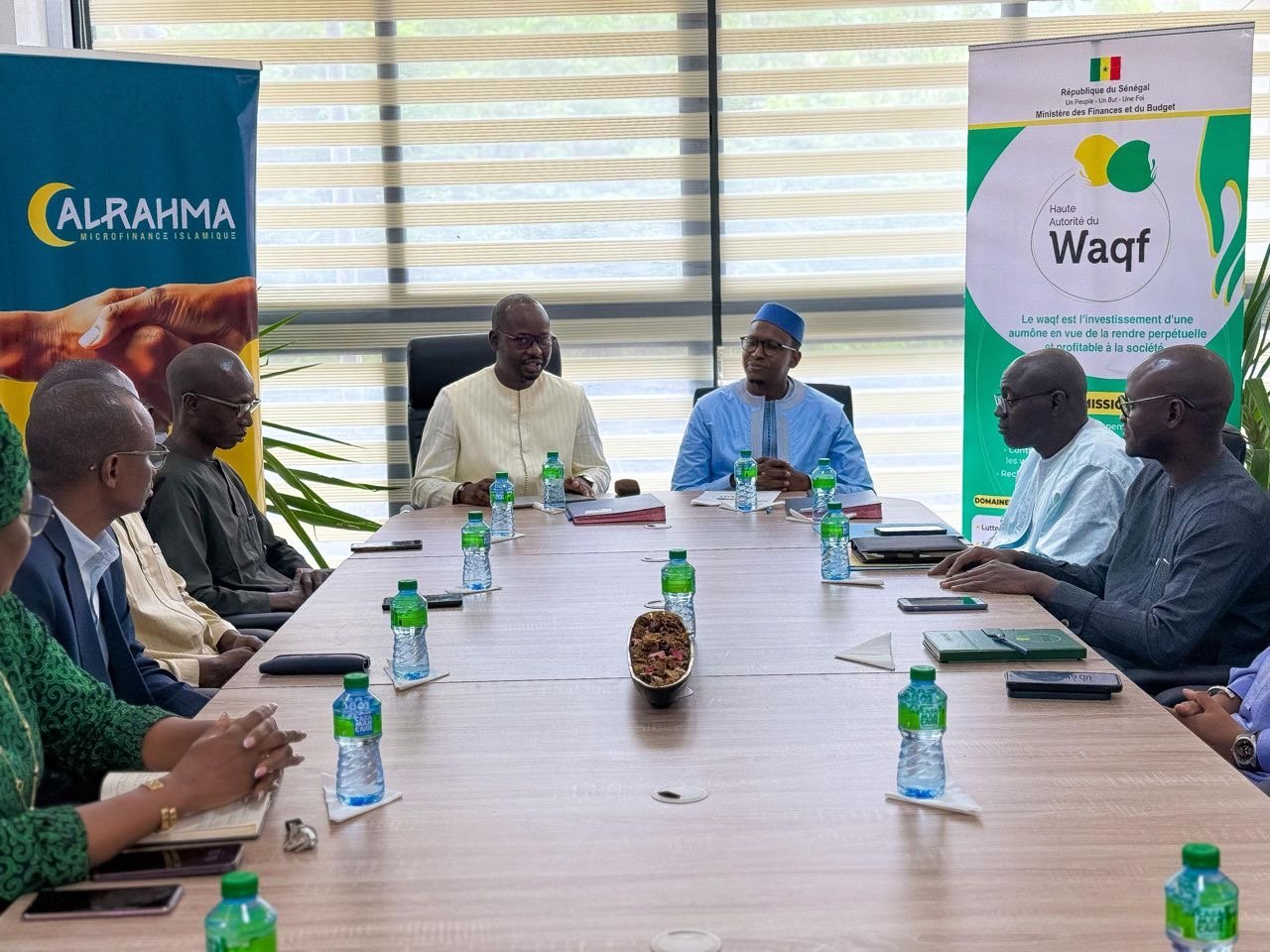 تم توقيع مذكرة تفاهم مع كل من الهيئة العليا للأوقاف بالسنغال ومؤسسة الرحمة للتمويل الأصغر الإسلامي بهدف تعزيز وتطوير مشاريع وقفية استثمارية مستدامة تصرف ريعها في دعم الخدمات الاجتماعية والمشاريع الإنسانية.