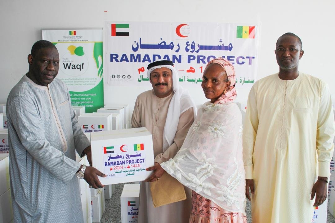 (داكار، 5 أبريل 2024) – منحت سفارة دولة الإمارات العربية المتحدة في داكار الهيئة العليا للأوقاف 200 سلة غذائية تحتوي على الأرز والزيت والسكر والحليب والتمر والكسكس والشاي.