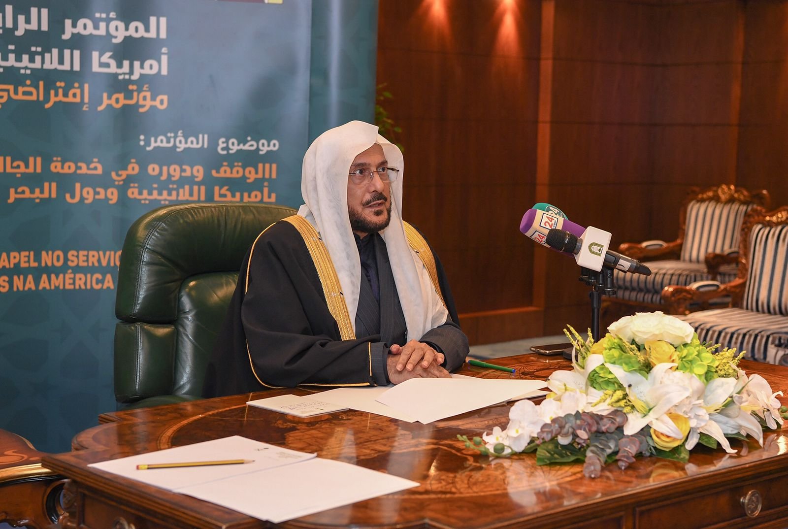 رعى معالي وزير الشؤون الإسلامية والدعوة والإرشاد الشيخ الدك عبداللطيف بن عبدالعزيز آل الشيخ، مساء اليوم الثلاثاء الثاني والعشرين من شهر جمادى الآخرة 1443هـ، الحفل الختامي “الافتراضي” لمؤتمر مسلمي أمريكا اللاتينية ودول البحر الكاريبي الـ”34″ والذي ينظمه مركز الدعوة الإسلامية بالبرازيل بالتعاون مع وزارة الشؤون الإسلامية والدعوة والإرشاد، بعنوان: (الوقف ودوره في خدمة الجاليات المسلمة بأمريكا اللاتينية ودول البحر الكاريبي) واستمر لمدة يومين.. بحضور عدد من العلماء والمفكرين والشخصيات الإسلامية من 30 دولة.