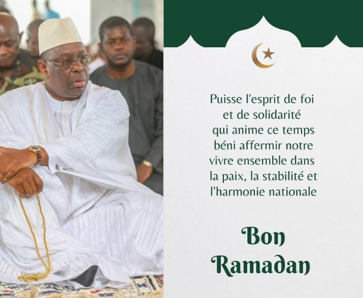 وفي تغريدة على حسابه في اتويتر هنأ الرئيس “ماكي سال” الشعب السنغالي والامة الاسلامية بحلول شهر رمضان ووصفه بانه شهر التسامح والوئام.