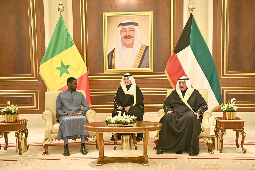 كما كان في استقبال فخامته معالي وزير شؤون الديوان الأميري الشيخ حمد جابر العلي الصباح ومعالي رئيس ديوان سمو ولي العهد الكويتي الشيخ ثامر جابر الأحمد الصباح ومعالي المستشار في ديوان رئيس مجلس الوزراء رئيس بعثة الشرف المرافقة الشيخ الدكتور باسل حمود المالك الصباح ونائب مساعد وزير الخارجية لشؤون أفريقيا السفير نايف محمد المضف.