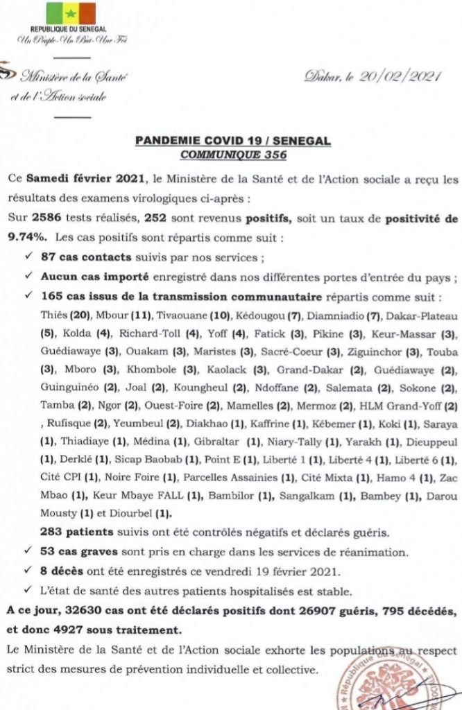 السنغال: البيان اليومي حول وضعية “كوفيد19”