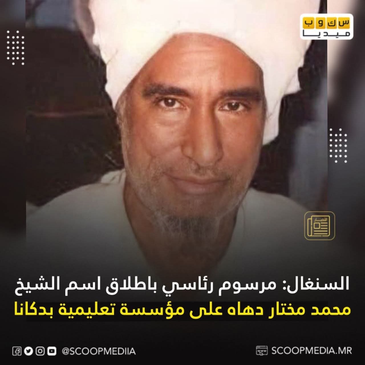 تعزيزاً للروابط مع موريتانيا.. السنغال تطلق اسم الشيخ محمد المختار ولد دهاه على مؤسسة تعليمية حيث أصدر الرئيس السنغالي باسيرو ديوماي فاي مرسوماً يقضي بإطلاق اسم الشيخ محمد المختار ولد دهاه على مدرسة “داغانا مدينة شريف” في بلدية دكانا بولاية سانت لويس.