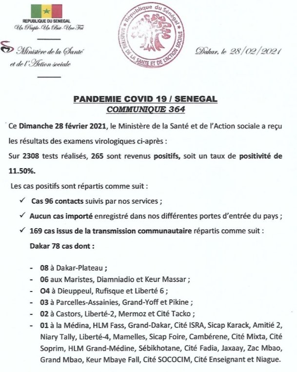 عدد الاصابات الجديدة 265 إصابة جديدة، من بينها: