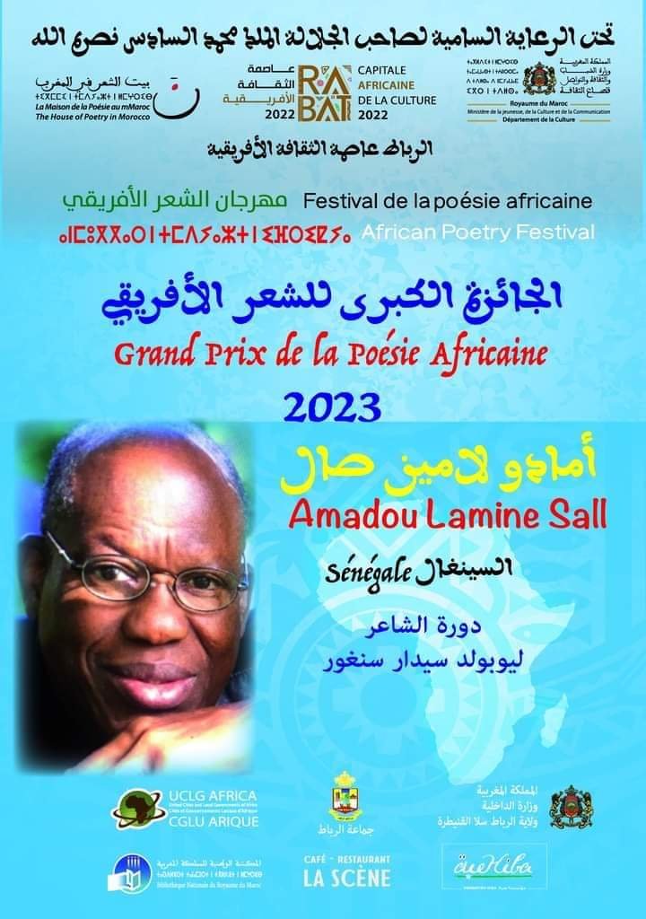 يُعلنُ بيت الشعر في المغرب، ووزارة الشباب والثقافة والتواصل فوْز الشاعر السينغالي أمادو لامين صال بالجائزة الكبرى للشعر الأفريقي، في دورتها الأولى. وهي الجائزة التي يتمّ إطلاقُها بمناسبة مهرجان الشعر الأفريقي الذي ينعقدُ بمدينة الرباط، تحت شعار” قارتُنا الأفريقية، أفُقُنا الشعري” أيام 5-6-7 ماي 2023 في إطار الاحتفال بالرباط عاصمة للثقافة الأفريقية.