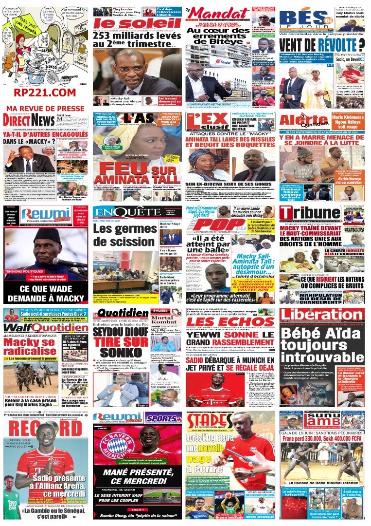 بالنسبة لصحيفة Sud Quotidien ، فإن تصريحات “امينتا الا” التي يدعمها “مانكر انجاي” ، دون أن ننسى موقف “مامدو مالك امبي” من الجمهور الداعم للرئيس Macky Sall ، والذي قد يكون نوعا عن نوع من الحراك الذي قد يكون قاتلاً للتحالف من أجل الجمهورية (APR).