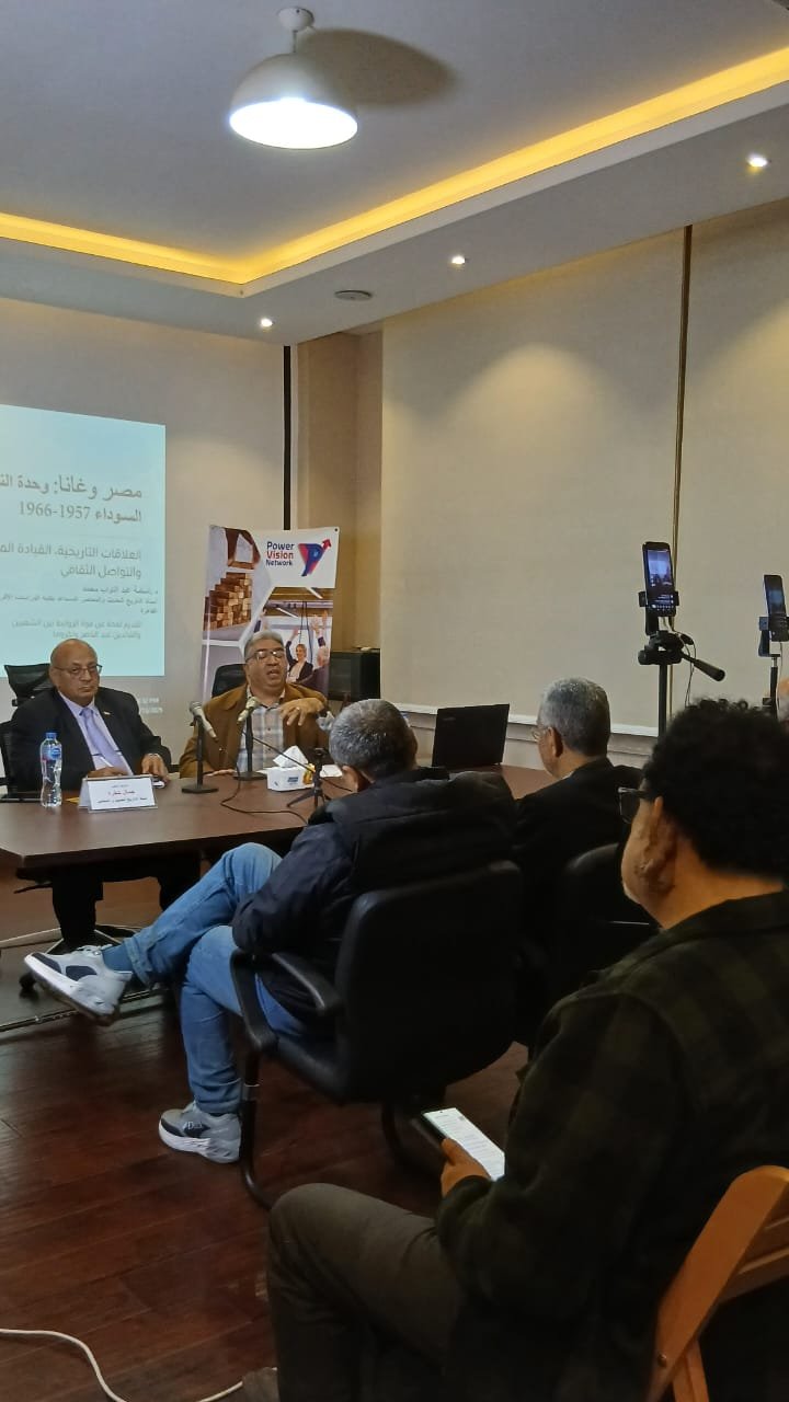 شارك في الفعالية الدكتور أسامة عبد التواب، أستاذ التاريخ المعاصر، حيث قدّم عرضًا علميًا تناول فيه الجذور التاريخية للعلاقات الثقافية بين مصر وغرب أفريقيا، وأبرز محطات التأثير المتبادل في مجالات الفكر، والتعليم، والحركة الثقافية، مع تسليط الضوء على التجربة الغانية كنموذج غني للتفاعل الحضاري.