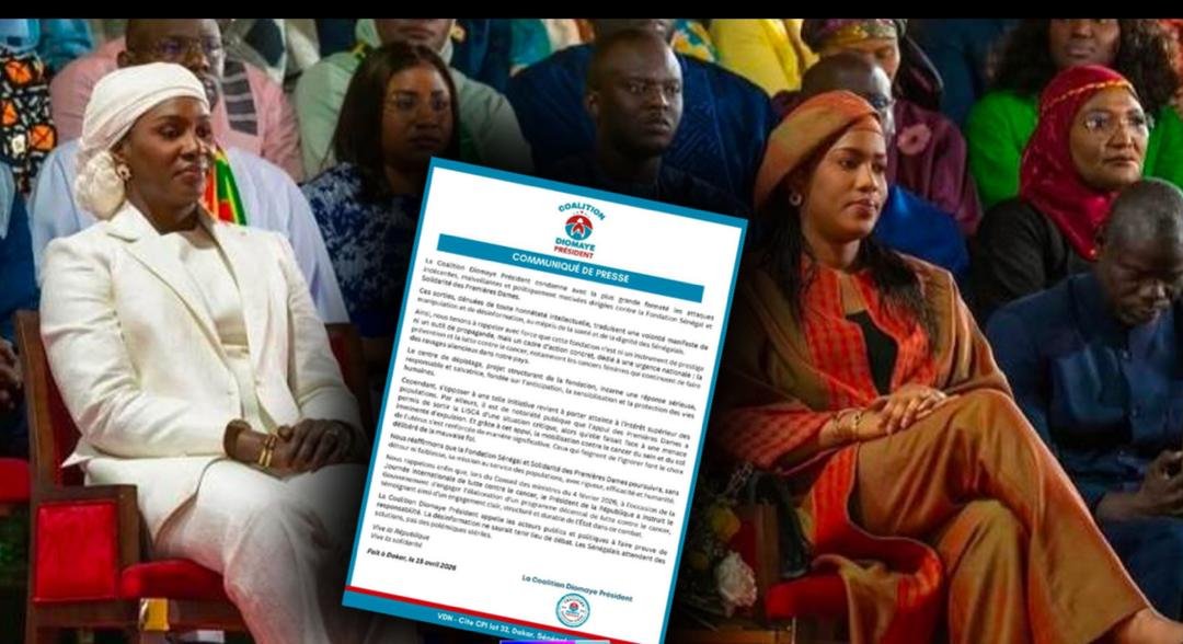 أصدر ائتلاف جوماي رئيسا ، بيانًا في 15 أبريل/نيسان 2026، في داكار، يدين فيه بشدة ما وصفه بالهجمات “غير اللائقة والحاقدة وذات الدوافع السياسية” التي استهدفت مؤسسة السنغال والتضامن للسيدتين الأُوليين.