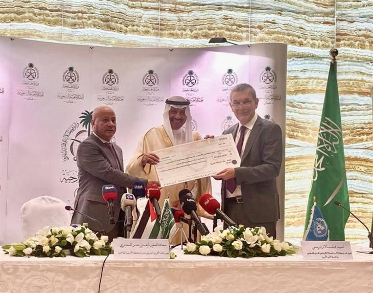 سلم سفير خادم الحرمين الشريفين لدى الأردن نايف السديري، اليوم (الأحد)، المفوض العام لوكالة الأمم المتحدة لإغاثة وتشغيل اللاجئين الفلسطينيين في الشرق الأدنى (الأونروا) فيليب لازاريني، شيكاً بقيمة 27 مليون دولار أمريكي لدعم برامج الوكالة وعملياتها في المنطقة.