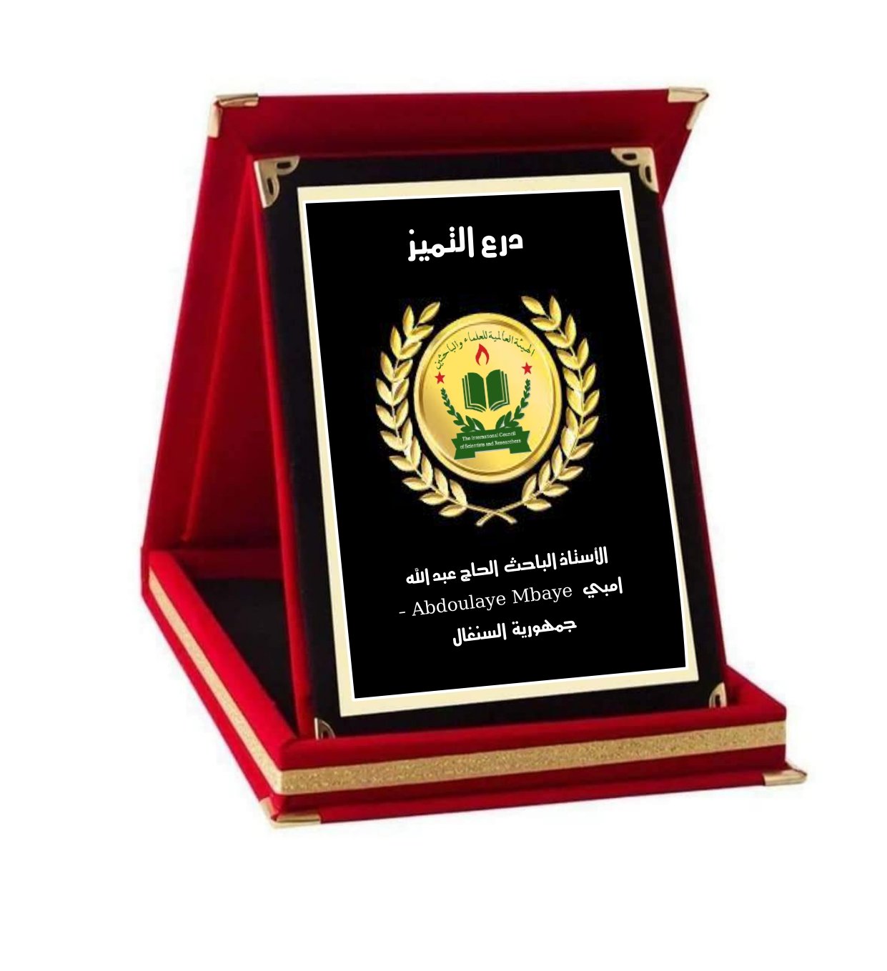 منحت الهيئة العالمية للعلماء والباحثين بالمغرب الاستاذ الباحث الحاج عبد الله امبي من السنغال درعاً للتميز تكريما له ، وذلك لمجهوداته الجبارة واسهاماته في مجال البحث العلمي.،وحضوره المميز لبعض مؤتمرات وندوات الهيئة المذكورة آنفاً.