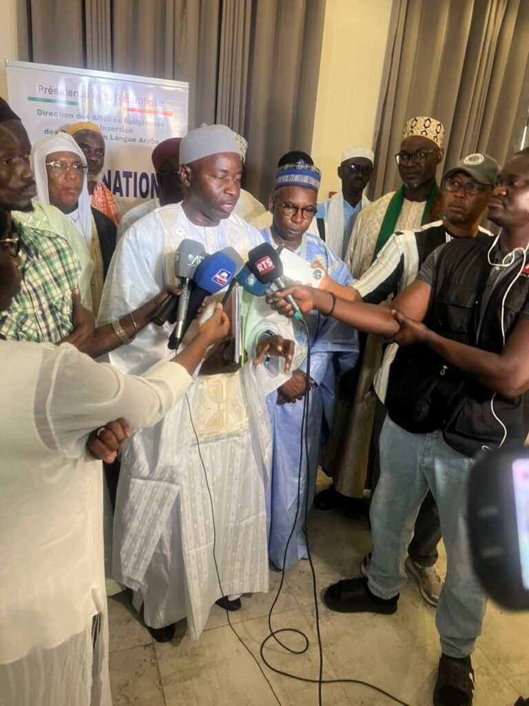 هذا وحضر الجلسة تلبية لدعوة مدير إدارة الشؤون الدينية وإدماج حملة الشهادات العربية دكتور جيم درامي ، معالي وزير التربية والتعليم مصطفى غراسي ، ومعالي الوزير المستشار لرئيس الجمهورية ومدير ديوان فخامته ، وممثلون لرئيس البرلمان السنغالي الحاج مالك انجاي ، إلى جانب مندوبي الأسر الدينية في السنغال ،الطرق الصوفية والمنظمات الإسلامية ،الكنيسة ،والزعامات التقليدية والوثنيين , وتستغرق أعمال هذه الورشة المهمة ثلاثة أيام ، وفي الحفل الافتتاحي تحدث المدير دكتور جيم عثمان درامي مرحباً بضيوف هذه الورشة الوطنية ،ومشيدا بمبادرات فخامة الرئيس بشير جوماي فاي