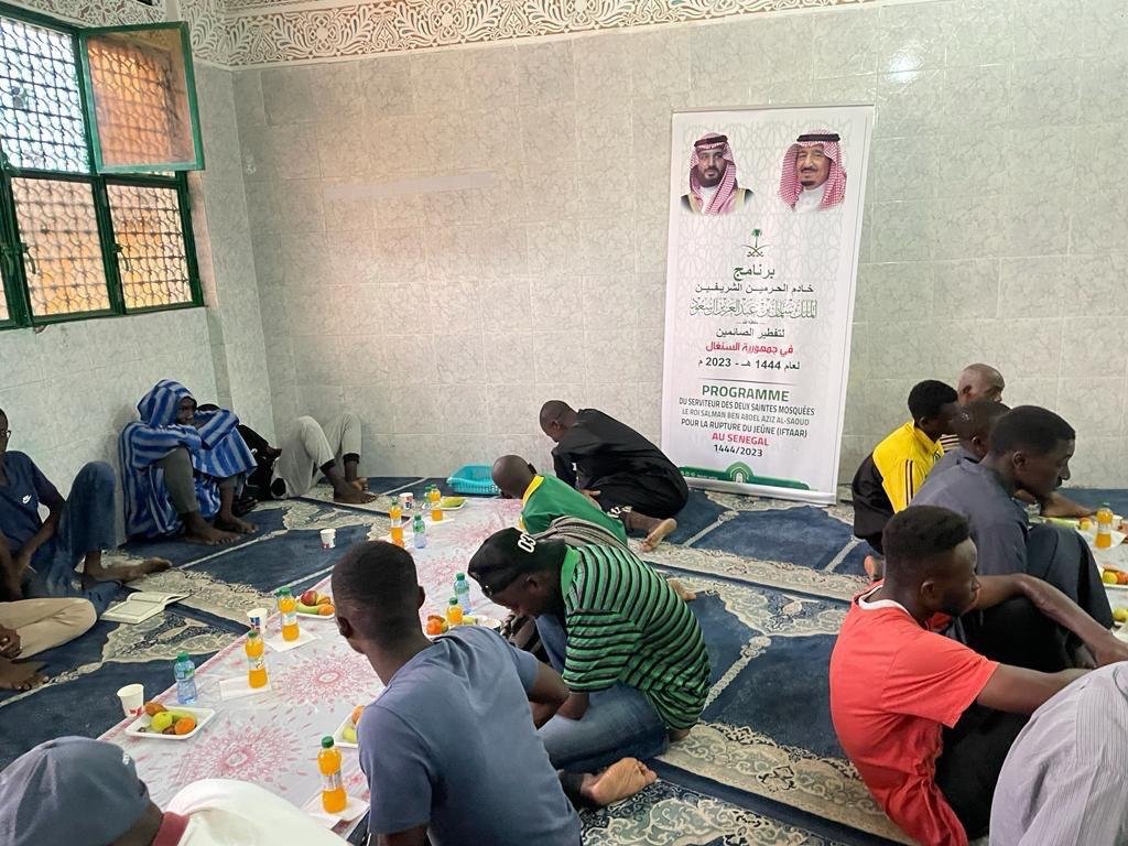دشنت وزارة الشؤون الإسلامية والدعوة والإرشاد ممثلة بالملحقية الدينية بسفارة المملكة العربية السعودية في داكار بجمهورية السنغال برنامج خادم الحرمين الشريفين الملك سلمان بن عبدالعزيز آل سعود ـ حفظه الله ـ لتفطير الصائمين ، لمسلمي جمهورية السنغال والدول التابعة للملحقية بمناسبة حلول شهر رمضان المبارك لعام 1444هـ .