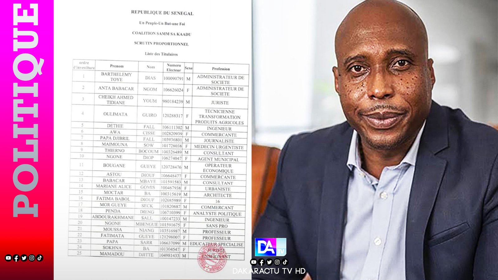 من بين الأسماء الأخرى البارزة في القائمة، يوجد تيرنو بوكوم، قائد حركة AGIR، الذي احتل المرتبة التاسعة. أما بوغان غاي داني، زعيم حركة غوم سا بوب، فقد جاء في المركز الحادي عشر على القائمة الوطنية لتحالف “سام سا كادو”.(احترام كلمتك )