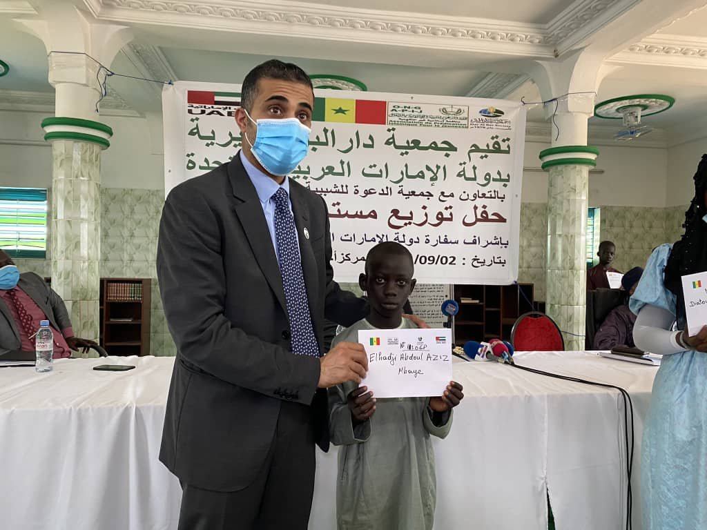في إطار جهود سفارة دولة الإمارات في إبراز الدور الانساني الرائد لدولة الإمارات العربية المتحدة في السنغال، قام السيّد محمد علي بن عيلان القائم بالأعمال نيابة عن سعادة السفير “سلطان الحربي” بزيارة عمل إلى مقر جمعية الدعوة للشبيبة الإسلامية السنغالية الواقعة في منطقة سيبيكوتان، حيث اطلع عن كثب على الأنشطة الانسانية والمشاريع الخيرية المتنوعة التي تقوم بها هذه الجمعية لصالح الفئات المحرومة والشرائح الضعيفة بدعم وتمويل من مؤسسة دار البر الإماراتية. كما بادر السيد القائم بالأعمال خلال الزيارة بالإشراف على توزيع المستحقات المالية للأيتام المكفولين من قبل الجمعية ، والبالغ عددهم 1016 طفلاً.