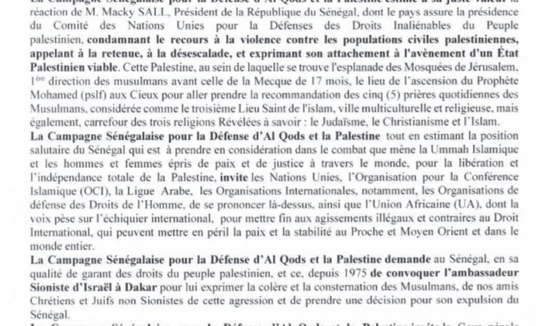 بيان الحملة السنغالية للدفاع عن القدس وفلسطين
