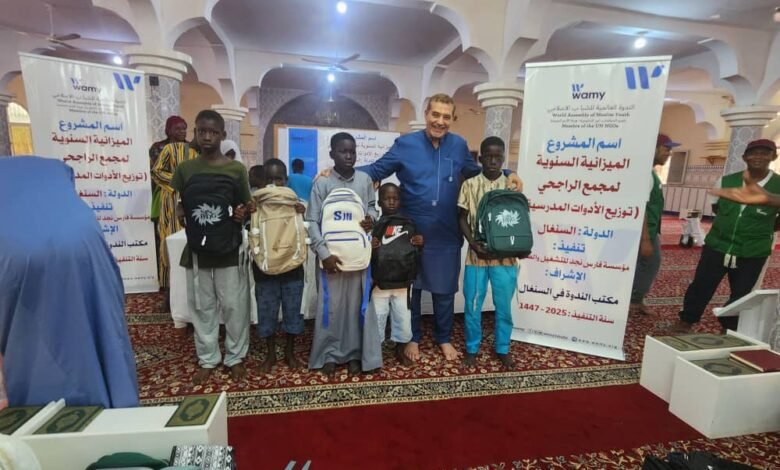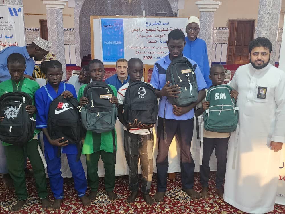 وزع مكتب الندوة العالمية للشباب الإسلامي بالسنغال الحقاىب المدرسية مع الأدوات الدراسية لحوالى 30ََ0 طالبا من الفقراء والايتام ، وذلك للتخفيف على اولياء أولياء أمور الأيتام .