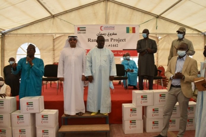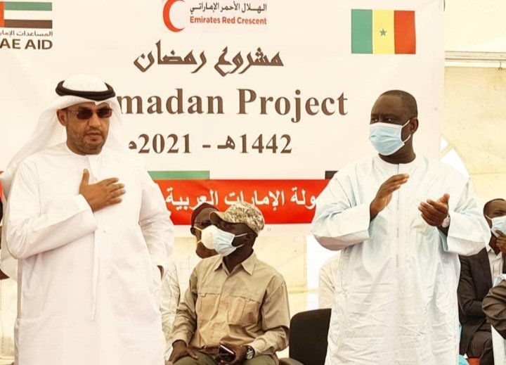 أشرف سعادة السفير سلطان علي الحربي سفير دولة الإمارات العربية المتحدة لدى السنغال يوم الأربعاء الموافق 21 أبريل 2021 على عملية توزيع السلل الغذائية التي قدمتها هيئة الهلال الأحمر الإماراتي بمناسبة شهر رمضان المبارك لصالح الأسر المتعففة والشرائح الضعيفة في مدينة غيجواي –ضواحي داكار العاصمة- وذلك بحضور رئيس البلدية علي سال وعدد من المسئولين المحليين.