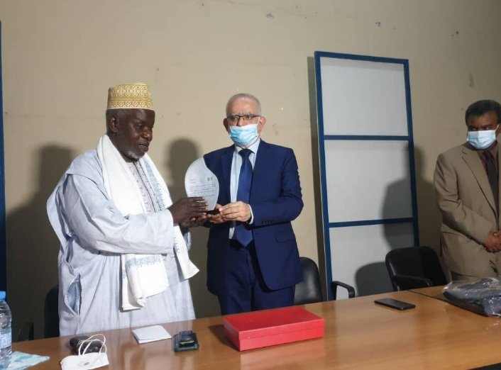 وقد تم تسليم الدكتور اسعد السحمراني درعا تذكاريا وثيابا سنغالية باسم إداريي وطلاب المركز .
