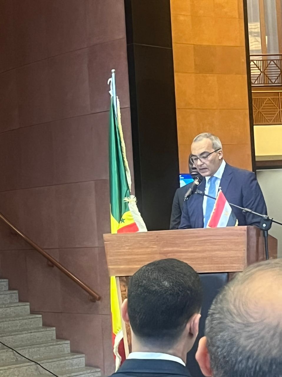 من جانبه تحدث ممثل الدولة السنغالية الوزير مالك ندور مهنئا سعادة السفير وشعب جمهورية مصر الشقيقة بمناسبة الإحتفال باليوم الوطني المصري ، ثم تحدث معاليه عن العلاقات الثنائية بين مصر والسنغال والتي تتقوى يوما بعد يوم بالحوار المستمر بين الجانبين