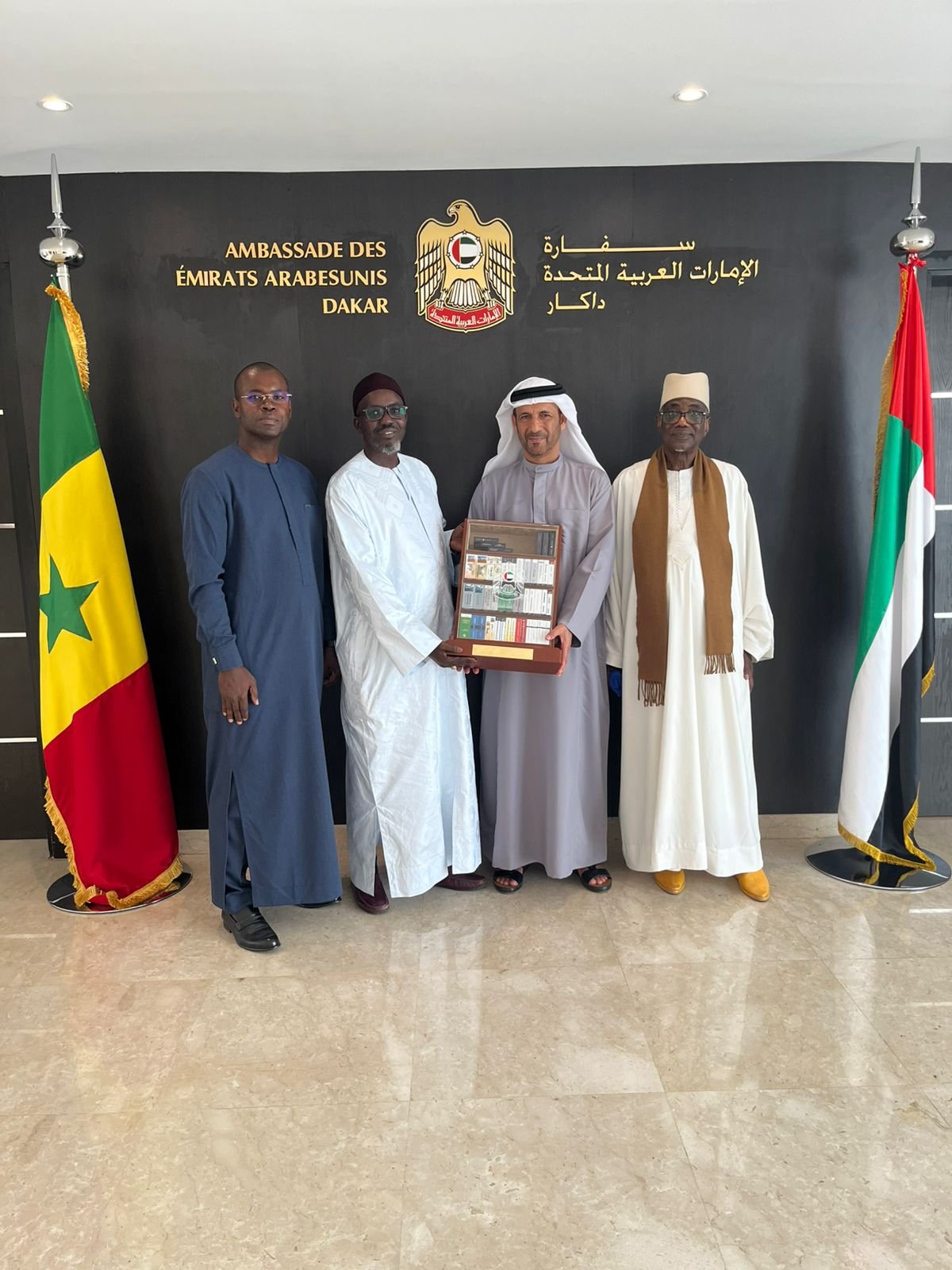 في إطار العلاقات الأخوية المتينة التي تجمع بين دولة الإمارات العربية المتحدة وجمهورية السنغال، استقبل سعادة السيد سعيد بن حمدان النقبي، سفير دولة الإمارات العربية المتحدة لدى السنغال، اليوم الثلاثاء 4 نوفمبر 2025 بمقر السفارة في دكار، وفدًا رفيع المستوى من المعهد الإسلامي بدكار برئاسة السيد الدكتور خادم سيلا، رئيس مجلس الإدارة، وعضوية كل من المدير العام السيد أحمد الصغير امباي، والأمين العام السيد عمر با.