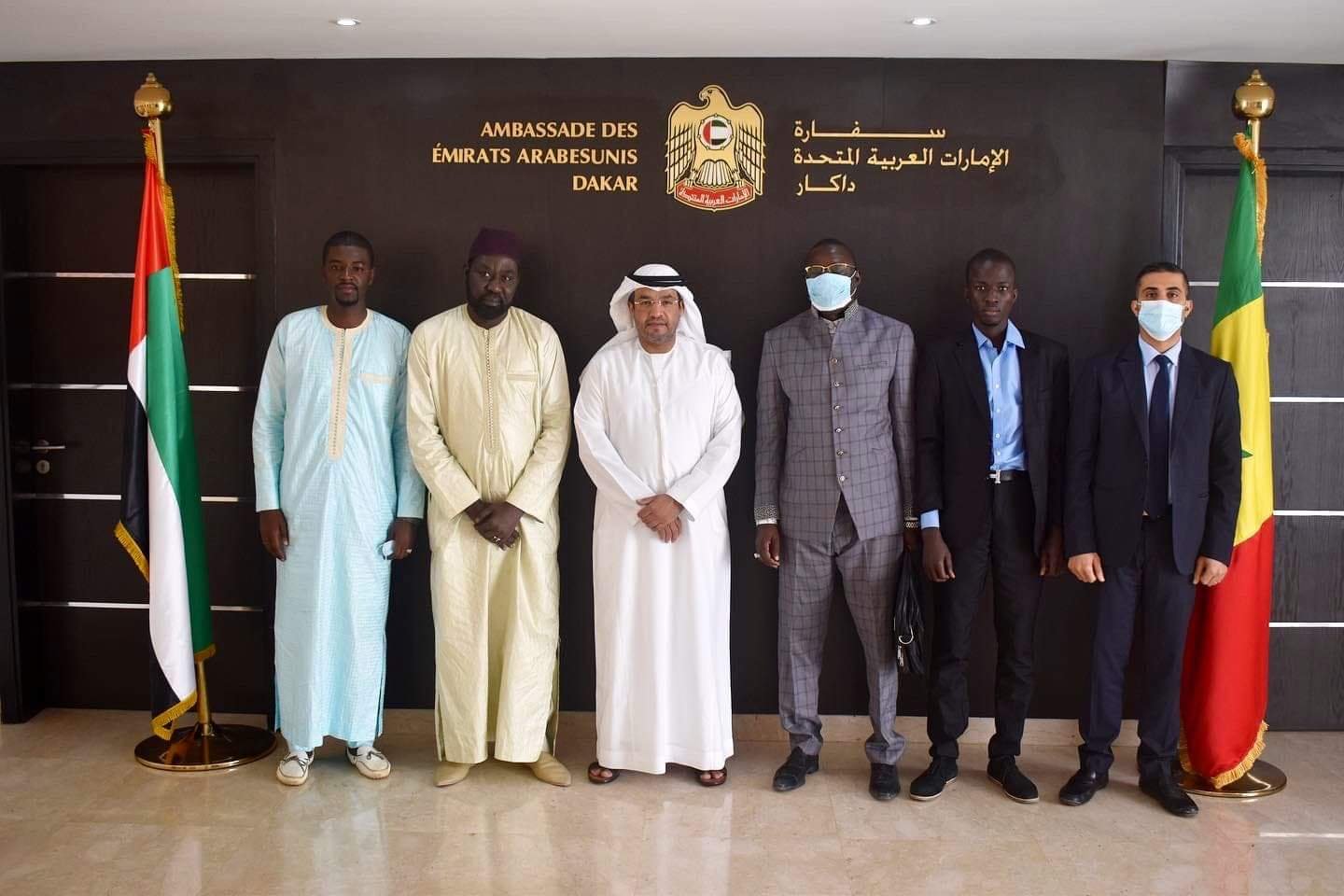 إستقبل سفير دولة الإمارات العربية المتحدة في دكار “سلطان علي الحربي” بمقر السفارة يوم أمس الثلاثاء 5 يناير 2021 وفدا من رابطة الناطقين بالعربية في السنغال برئاسة المنّسق العام السيد “سليمان غجغا” وبعضوية كل من: الأستاذ “فاضل غي” رئيس نادي السنغال الأدبي، مدير عام موقع “رفي دكار ” والأستاذ “حماه الله صو” الأمين العام لشؤون التلاميذ والطلبة في الحركة، و”خادم واد” رئيس النادي الثقافي في قسم اللغة العربية بجامعة “شيخ أنت جوب” بدكار