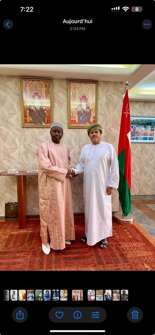 تلبية لدعوة كريمة من سعادة سفير سلطنة عمان في السنغال السيد محمد الكثيري قام المندوب العام للشؤون الدينية دكتور جيم درامي بزيارته في مكتبه. وتم خلال اللقاء تباحث حول عن موضوعات متعددة تهم البلدين ، وخاصة في الشؤون الدينية و المجالات التي يمكن التعاون فيها لمصلحة الدولتين الشقيقتين.