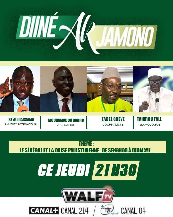 في حلقة خاصة من برنامج “الدين والزمان”، سيتم استضافة الإعلاميين البارزين فاضل غي و محمد باروا، بالإضافة إلى الحقوقي المعروف سيد غاسما، وطاهر فال رئيس حركة موداب التابعة لحزب “باستيف” لمناقشة موقف السنغال من القضية الفلسطينية من خلال سياسات الرؤساء الذين تعاقبوا على كرسي الحكم . وتعتبر هذه الحلقة فرصة هامة لفهم التطورات والتغيرات في إطار دعم السنغال للقضية الفلسطينية عبر العقود.