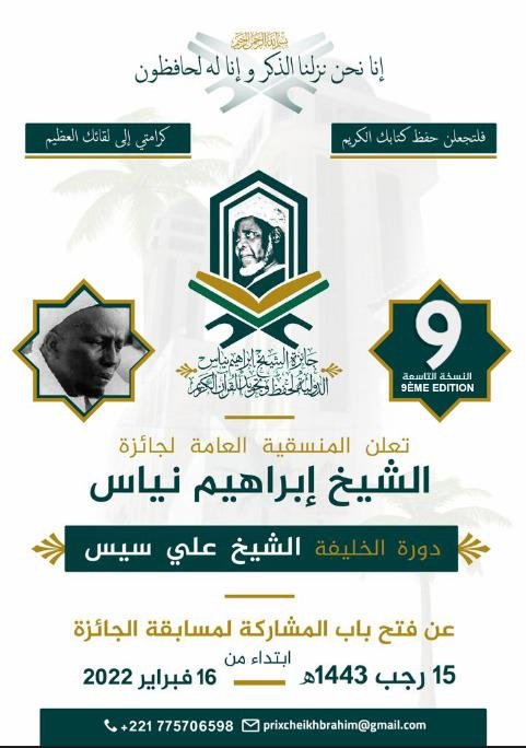 أعلنت المنسقية العامة لجائزة الشيخ إبراهيم انياس الدولية لحفظ وتجويد القرآن الكريم عن فتح المجال للمشاركة في مسابقة جائزة شيخ الاسلام الشيخ ابراهيم انياس للقرآن الكريم في نسختها التاسعة، وتفتح المشاركة أمام جميع الجنسيات ويشترط ان لا يتجاوز عمر المشارك 20 عاما وأن يكون منتسبا لإحدى المدارس القرآنية، وأن يكون حافظا لكتاب الله كاملا.