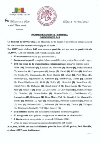 كوفيد 19: بيان صحفي رقم 349 السبت 13 فبراير