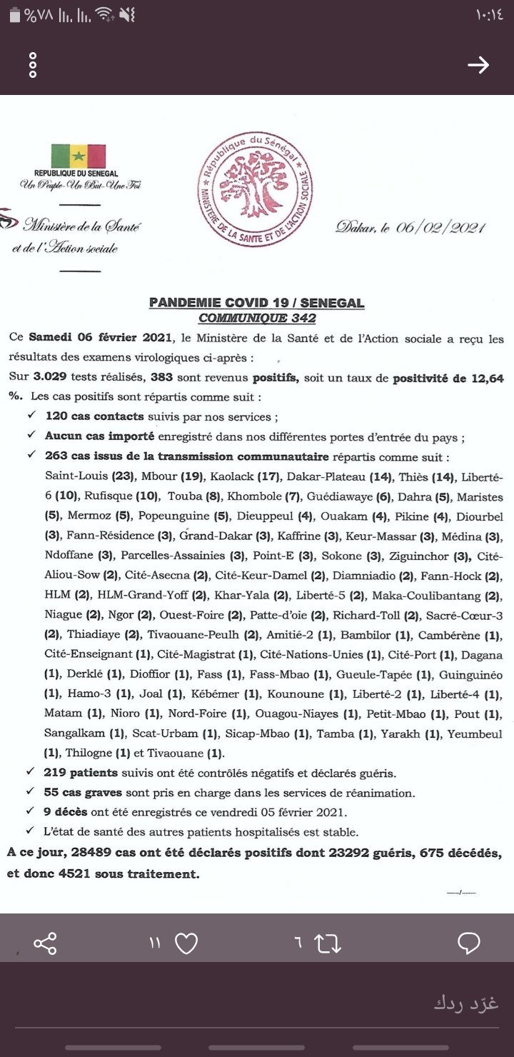جاء في بيان وزارة الصحة رقم 342 ما يلي: