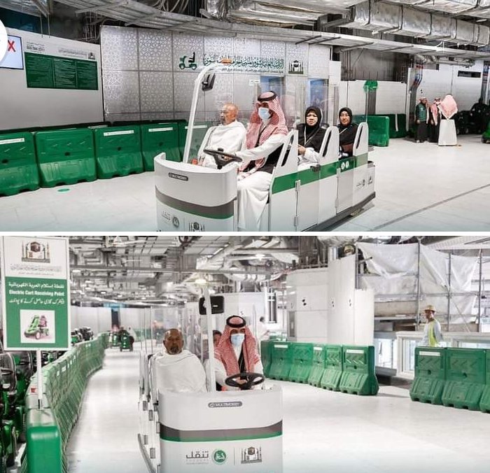 أعلنت الرئاسة العامة للحرمين الشريفين عن توفير قاطرة كهربائية لنقل كبار السن والأشخاص ذوي الإعاقة لأجل الطواف والسعي في المسجد الحرام، وتقل القاطرة 7 ركاب وسائقا وتستطيع قطع 30 كيلومترا قبل إعادة شحن بطارياتها مجددًا ويمكنها الالتفاف 360 درجة في الأماكن الضيقة