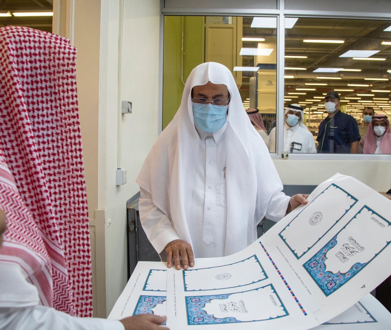 من ناحية أخرى، قام معالي وزير الشؤون الإسلامية المشرف العام على المجمع، بجولة تفقدية على أرجاء المجمع ومرافقه وأقسامه وخطوط الإنتاج فيه، اطمأن خلالها على سير العمل وفق الخطة الاستراتيجية المعتمدة.