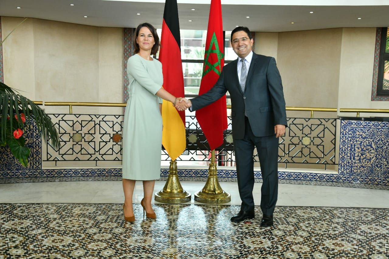 - بدأت وزيرة الخارجية الألمانية أنالينا بيربوك اليوم الخميس أول زيارة عمل رسمية لها إلى المغرب، استقبلت في مستهلها من طرف نظيرها المغربي ناصر بوريطة، وناقش المسؤولان جملة من الملفات السياسية والاقتصادية، وذلك بعد انتهاء توتر العلاقات بين الطرفين.