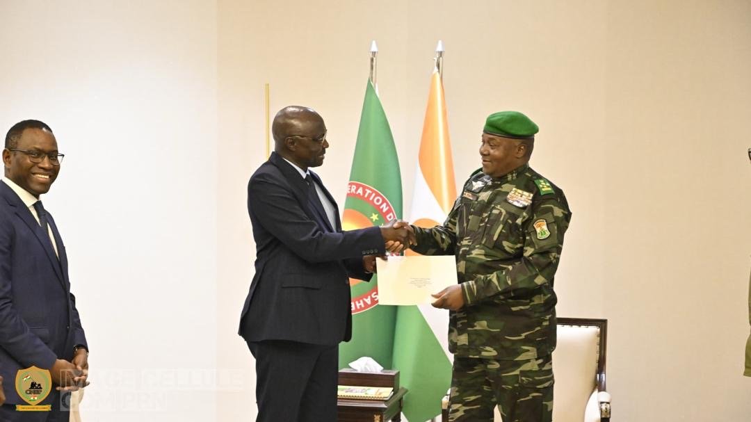 استقبل فخامة الفريق أول عبد الرحمن تياني، رئيس جمهورية النيجر اليوم الخميس 8 مايو 2025، الجنرال بيرام ديوب، وزير القوات المسلحة ، المبعوث الخاص للرئيس السنغالي بشير جوماي في ، برفقة السيد أمادو هوت، الوزير السابق، المرشح لرئاسة البنك الأفريقي للتنمية.