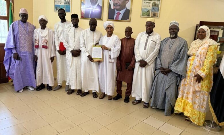 أدى وفد المنتدى (خريجو السودان) برئاسة السيد الدكتور محمد جوف رئيس المنتدى، والسيد رئيس مجلس الشورى المفتش إبراهيم جوب، والسادة: الأمين الإداري عبد العزيز ساخو، وأمين التربية والتكوين بابا آدم سه، وأمينة شؤون المرأة عائشة باه، وأعضاء من مجلس الشورى الأستاذ إبراهيم باس، والأستاذ صالح جاه، الأستاذ مصطفى انجوك، أسمى وأحر آيات العزاء وصادق المواساة إلى سعادة سفير جمهورية السودان لدى السنغال عبد الغني النعيم عوض الكريم، في مكتبه في يوم الجمعة الموافق ٢٠٢٥/١١/٧.