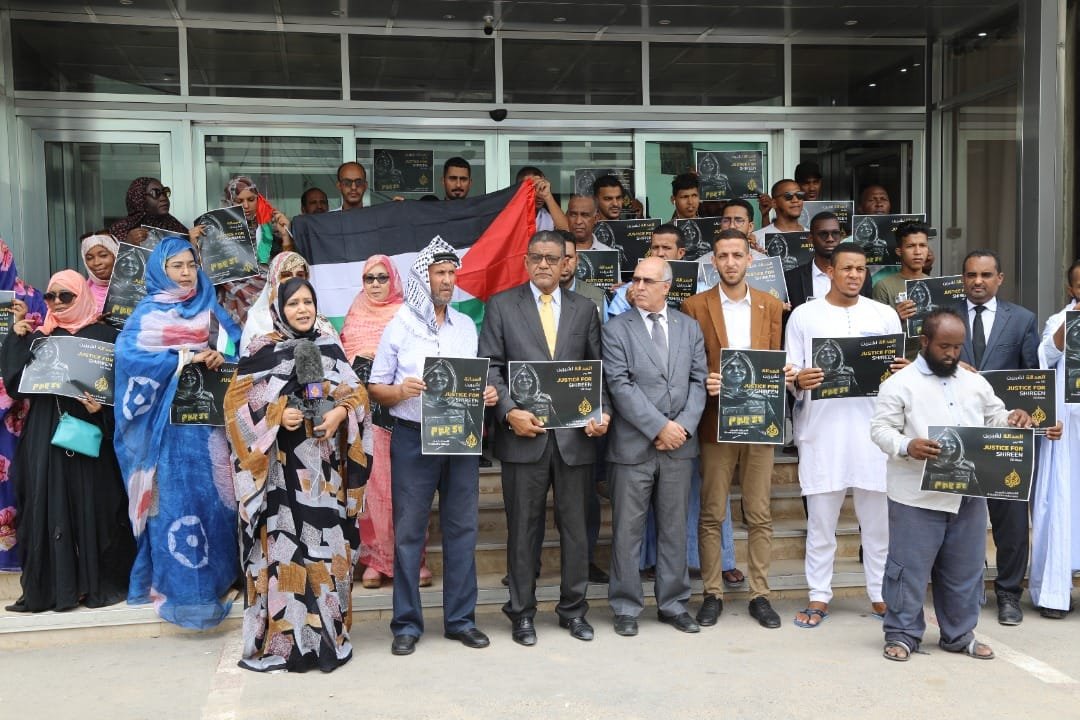وقال نقيب الصحفيين الموريتانيين أحمد طالب ولد المعلوم، إن هذه الوقفة تؤكد استمرار حملة التضامن مع شيرين أبو عاقلة.