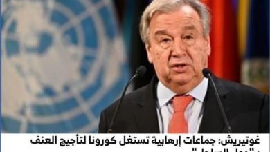 حذر الأمين العام للأمم المتحدة، أنطونيو غوتيريش، الخميس، مجلس الأمن الدولي من مغبة استغلال الجماعات الإرهابية جائحة كورونا، لتأجيج العنف…