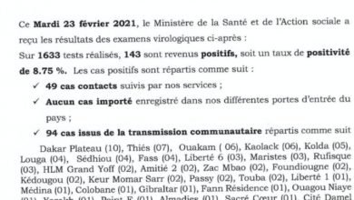 عدد الفحوصات: 1633 فحصاعدد الاصابات الجديدة 143 إصابة جديدة، من بينها:حالات الاصابة المباشرة 49 حالة اتصال مباشرحالات الاصابة المنتقلة مجتمعيا 94…