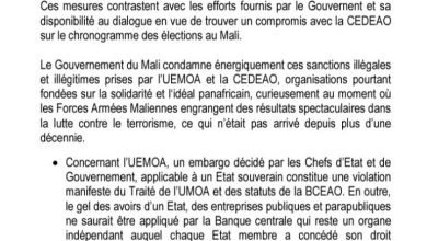 أدانت الحكومة المالية بشدة العقوبات المفروضة على البلاد من طرف المجموعة الاقتصادية لدول غرب إفريقيا “إيكواس” والاتحاد الاقتصادي والنقدي لغرب…