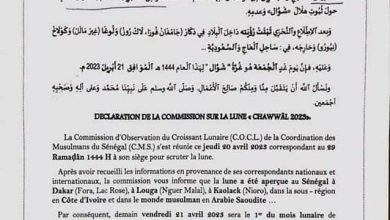 أعلنت لجنة مراقبة الأهلة في السنغال عبر بيان لها ان غدا الجمعة هو فاتح شهر شوال، وذكر البيان ان رؤيه…