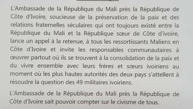 دعت سفارة جهمورية مالي لدى ساحل العاج، رعاياها إلى ضبط النفس، في ظل التوتر الأخير بين باماكو وأبيدجان، حول توقيف…