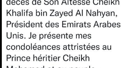 اعرب الرئيس ماكي سال عبر صفحته في “اتويتر” عن حزنه ومواساته للشعب الإماراتي في وفاة الشيخ خليفة بن زائد ال…