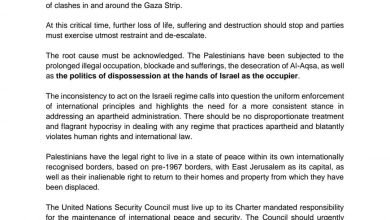 مالیزیا تشعر بقلق عمیق إزاء التصعید الأخیر للعنف في الشرق الأوسطوتقلق إزاء فقدان العدید من الأرواح بسبب التصعید الأخیر،.مواجھات في…