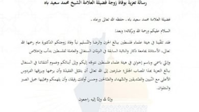 ‘هيئة علماء فلسطين’ ترسل تعزية إلى ‘د.محمد سعيد باه’