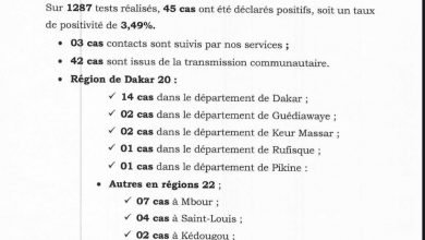 عدد الفحوصات:1287 فحصاعدد الإصابات: 45 إصابة جديدة من بينها 03 حالات اتصال مباشر و 42 إصابة مجتمعيةسجلت 245 حالة شفاء…