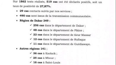 اعلنت وزارة الصحة السنغالية عن الوضعية اليومية لانتشار الوباء على النحو التالي:عدد الفحوصات 2493عدد الإصابات الجديدة: 663 من بينها 30…