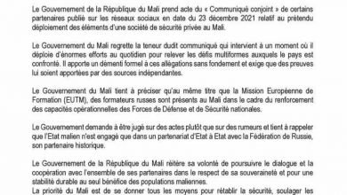 نفت الحكومة المالية في بيان صدر مساء أمس الجمعة أي انتشار لعناصر شركة أمنية روسية. كانت أعلنت عنه حوالى 15…